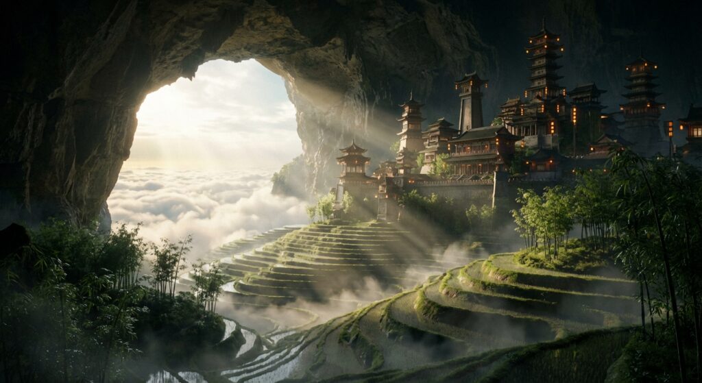 崆峒人把他们居住的这些石中空穴称为洞天,它们既是山洞,又有着极其宽大的空间,而且往往还能连通到外界,让天地巨树的阳光可以照射进来,形成理想的居住环境。