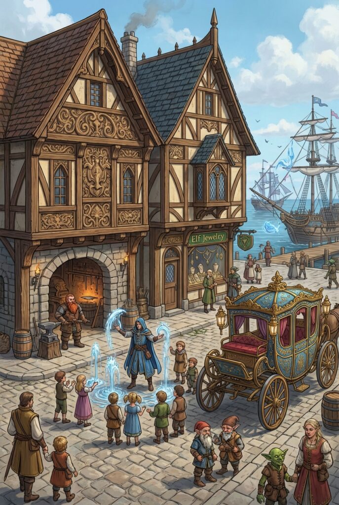 塔达宁是帝国最大的城市,这座拥有五百万人口的荣耀之城坐落在卢纳甘河流入蓝海的入海口,既是帝国最大的海港,也是最大的空港。从其他空岛往来泰坦尼亚的空艇大部分在塔达宁起降。这个城市以半身人为主,不过因为其独特的地理位置,即便是在无比多元的帝国之中,也是种族构成最丰富的大都会。