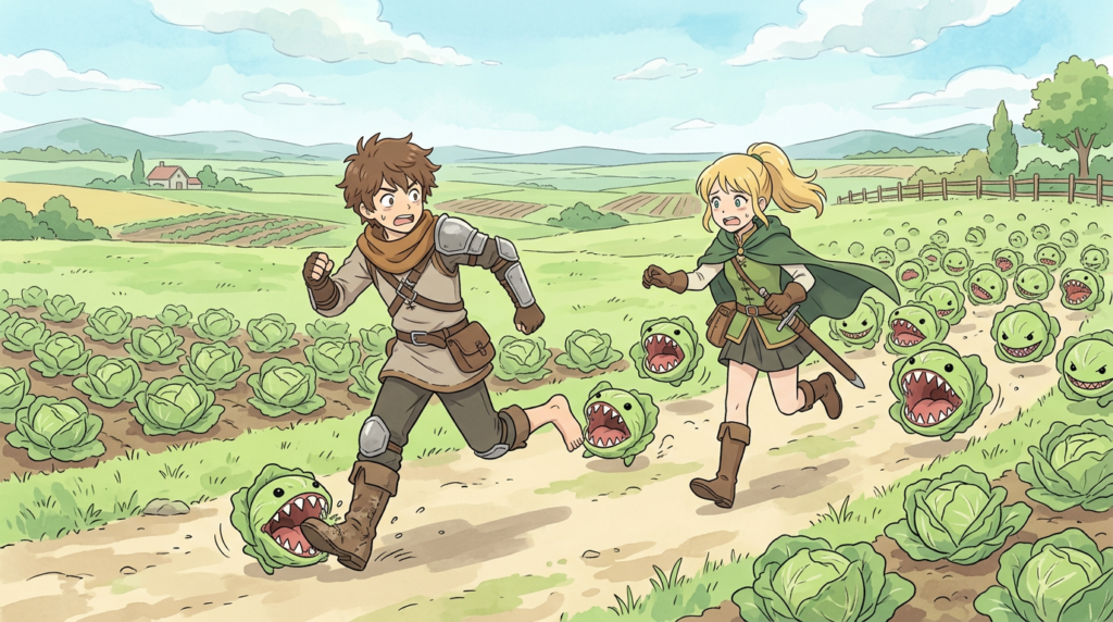 增殖之灾 据当地德鲁伊圈的古老记载,食人卷心菜并非自然进化的产物。传说是一位试图创造“永不枯竭粮食”的疯狂德鲁伊,意外将来自卡特瓦尔群岛的违禁药物注入了作物种子。虽然那位德鲁伊早已失踪,但这种扭曲的植物却幸存下来,并在泰坦尼亚和猫岛扎根,成为了对贪婪农人的永恒讽刺。