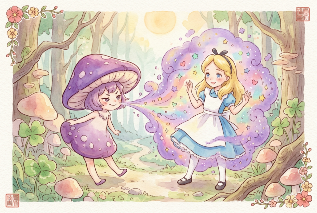 幻觉彩虹烟. 大喷菇娘向前方 6 米 锥状区域喷出无害但绚丽的烟雾。区域内的生物必须进行一次 DC 13 的感知豁免,否则将陷入魅惑状态,持续 1 分钟。 幻觉效果:被如此魅惑的生物会看到周围充满可爱的星星和爱心。在其回合开始时,该生物必须掷一次 d10: