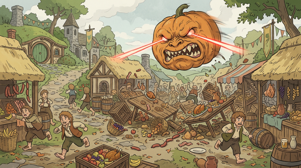 这些巨大的漂浮南瓜并非自然生长的产物,而是崩解乐队通过扭曲的农业魔法与魔物契约制造出的诡异魔物。它们通常被部署在丰收庆典或富饶的村庄上空,旨在散播恐慌并摧毁当地的粮食储备。尽管外表看似滑稽,但其内部燃烧的地狱之火与缠绕的藤蔓使其成为致命的收割者。在猫岛等地,它们被视为巫的象征。