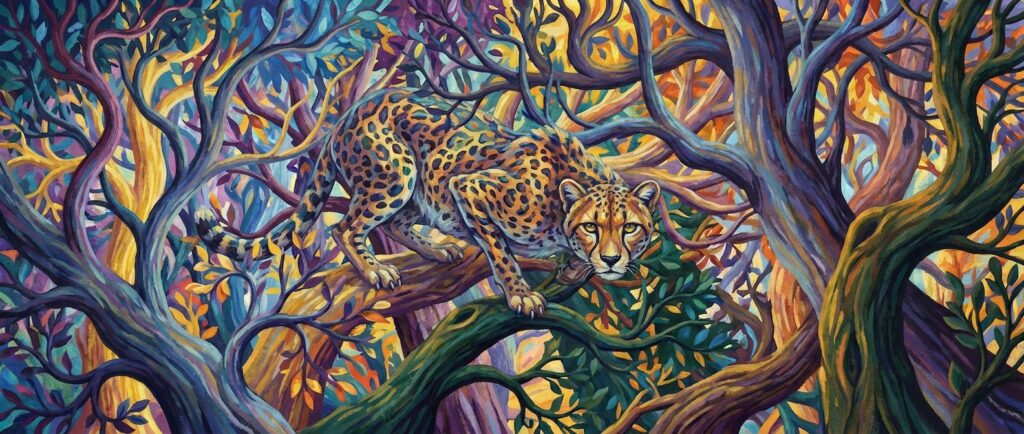 虚影残留. 每当林影豹移动超过 3米或使用“树间瞬移”时,它会在原位留下一个持续到其下一回合开始的虚影。当一个生物对林影豹发动攻击时,必须进行一次 DC 15 的智力(调查)检定。若失败,攻击将指向虚影并自动失误。拥有盲视或真实视觉的生物免疫此效果。